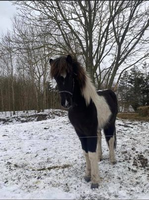 Safír er en smuk, broget hingst, på 149cm i stang. Han kan ikke give røde afkom uanset farven på hoppen.