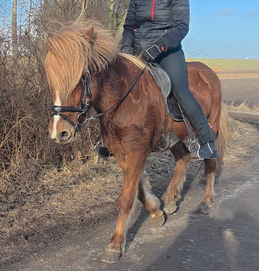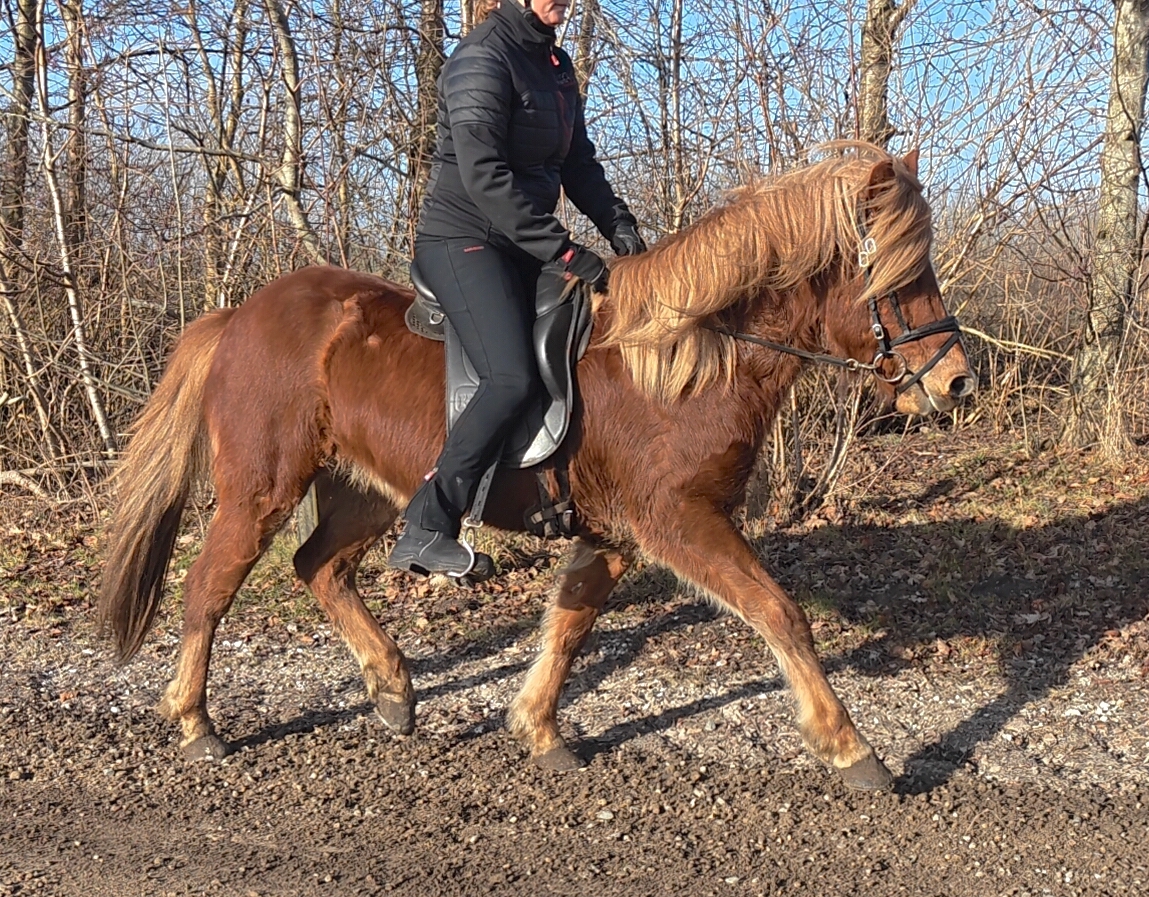 SalgshesteLækker rolig rødblak vallakKvikur fra Stutteri Geysir DK2020100162Kvikur er en sød 6-årig vallak på 142 cm med et rigtig godt sind. Han er sød, lydig og samarbejdsvillig med middel vilje, hvilket gør ham behagelig og ukompliceret at ride. Han kan rides af de fleste. Han har klart adskilte gangarter med gode bevægelser – og især galoppen skal fremhæves, da den er virkelig lækker og velspringende. Han er nem at styre i tempo, nem at stoppe og generelt let at ride, hvilket giver rytteren en tryg og positiv oplevelse. Kvikur er velredet og har været redet i 2 år, så han har allerede opnået en god portion erfaring. Han arbejder fint med dressurøvelser og er opmærksom og lydig under rytter. På tur er han en fornøjelse – både alene og i flok – og han er ikke bange for trafik. Derudover er han nem at læsse i trailer. Kvikur er efter Aik fra Mosegården og hans morfar er Þráinn frá Sigtúni som er kåret med 9 for tølt, skridt og trav og 8,51 for rid. En dejlig vallak til rytteren, der ønsker en velredet, stabil og alsidig islandsk hest med kvalitet og et godt hoved.